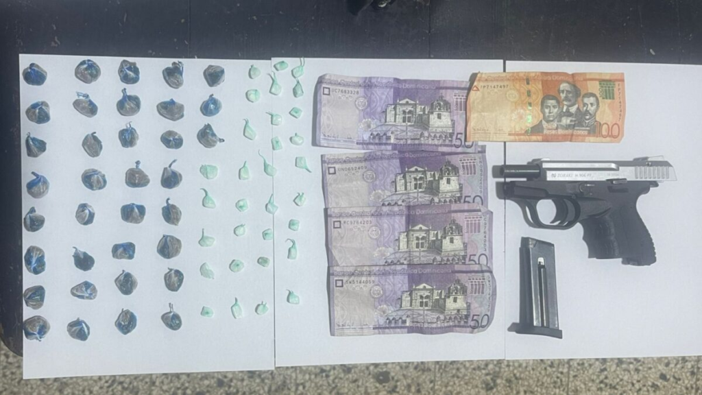 En la provincia La Vega, agentes preventivos intervinieron el sector Los Barrancones, identificado como punto de distribución de narcóticos. Durante la acción, varios individuos emprendieron la huida al notar la presencia policial, dejando abandonadas 35 porciones de presunta marihuana, 31 porciones de un material rocoso, presumiblemente crack, RD$300 en efectivo y una pistola marca ZOKAKI, sin cápsulas. Los agentes actuantes indicaron que profundizan las investigaciones para dar con los responsables.