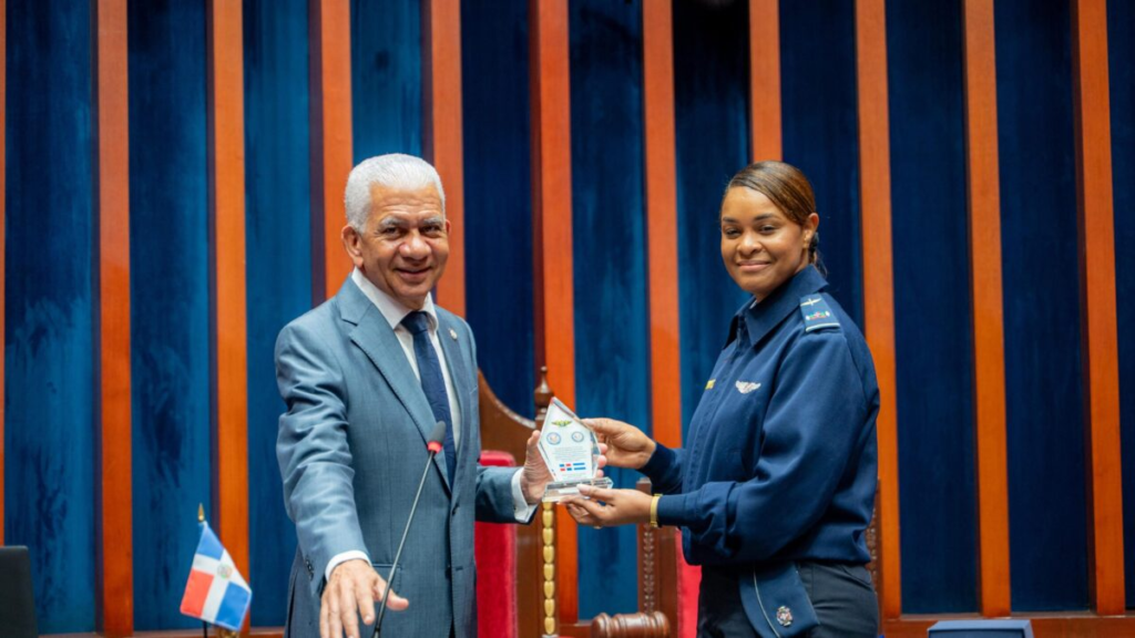 “Esperamos que esta placa ocupe un lugar especial en su hogar y, cuando la vea, se acuerde de que el país cuenta con militares que nos mantenemos firmes sirviendo a la Patria”, expresó la oficial de la Fuerza Aérea de la República Dominicana.